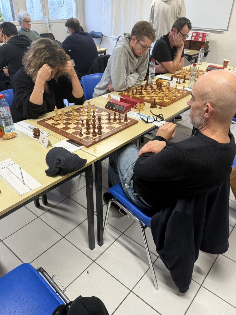 Au 5ème échiquier, Erik, pour son grand retour en compétition (!), affronte lui aussi un joueur à plus de 1 900 F. Tout va bien jusqu’au 21ème coup jusqu’à ce que son adversaire prenne et consolide un avantage positionnel, envoyant une marée de pions inarrêtable sur l’aile roi.